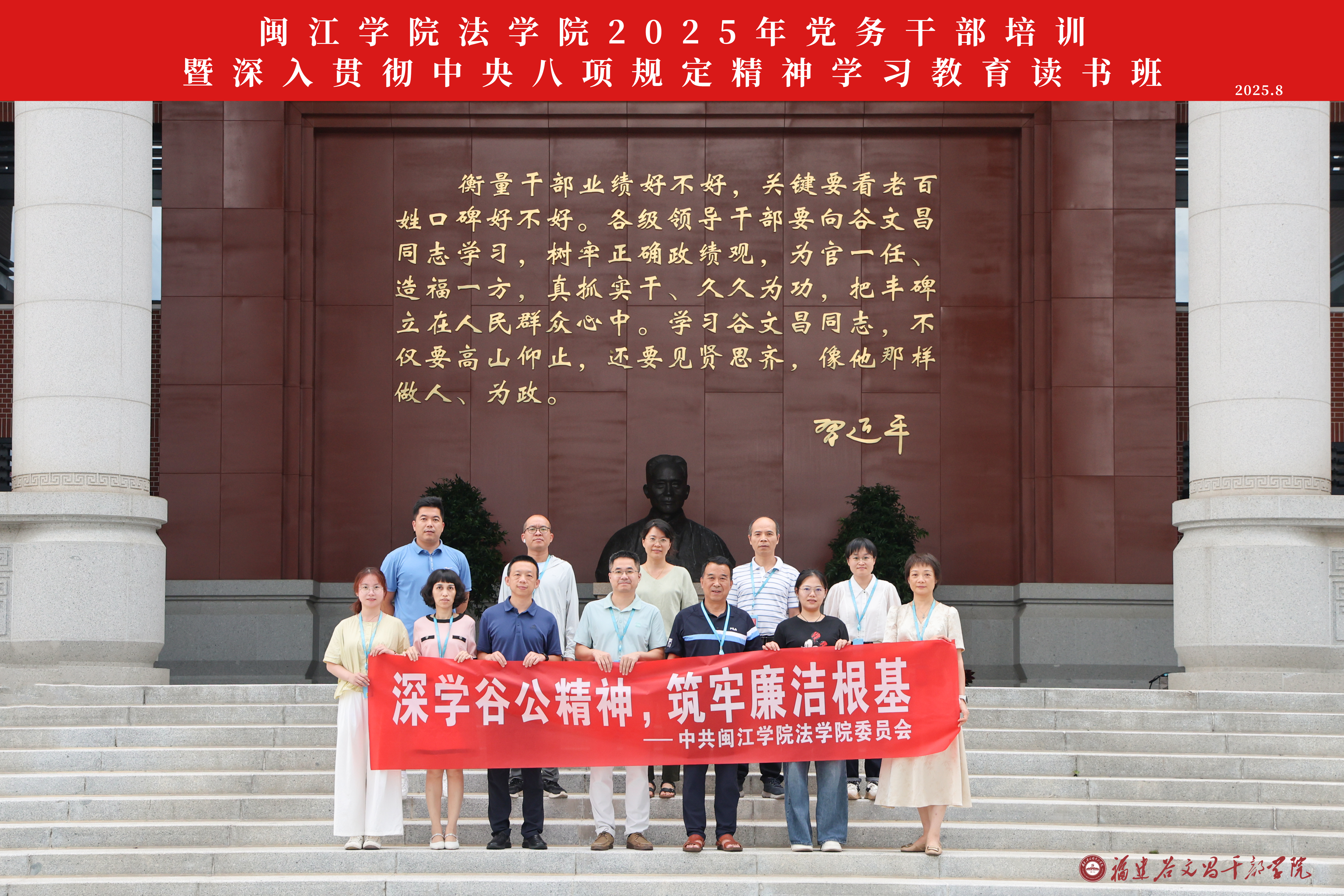 8月13至15日,威廉希尔williamhill党委理论学习中心组带领威廉希尔williamhill党务干部前往谷文昌干部公司,开展2025年党务干部培训暨深入贯彻中央八项规定精神学习教育读书班,旨在全面提升党务干部素质,强化党建引领,筑牢党建根基。