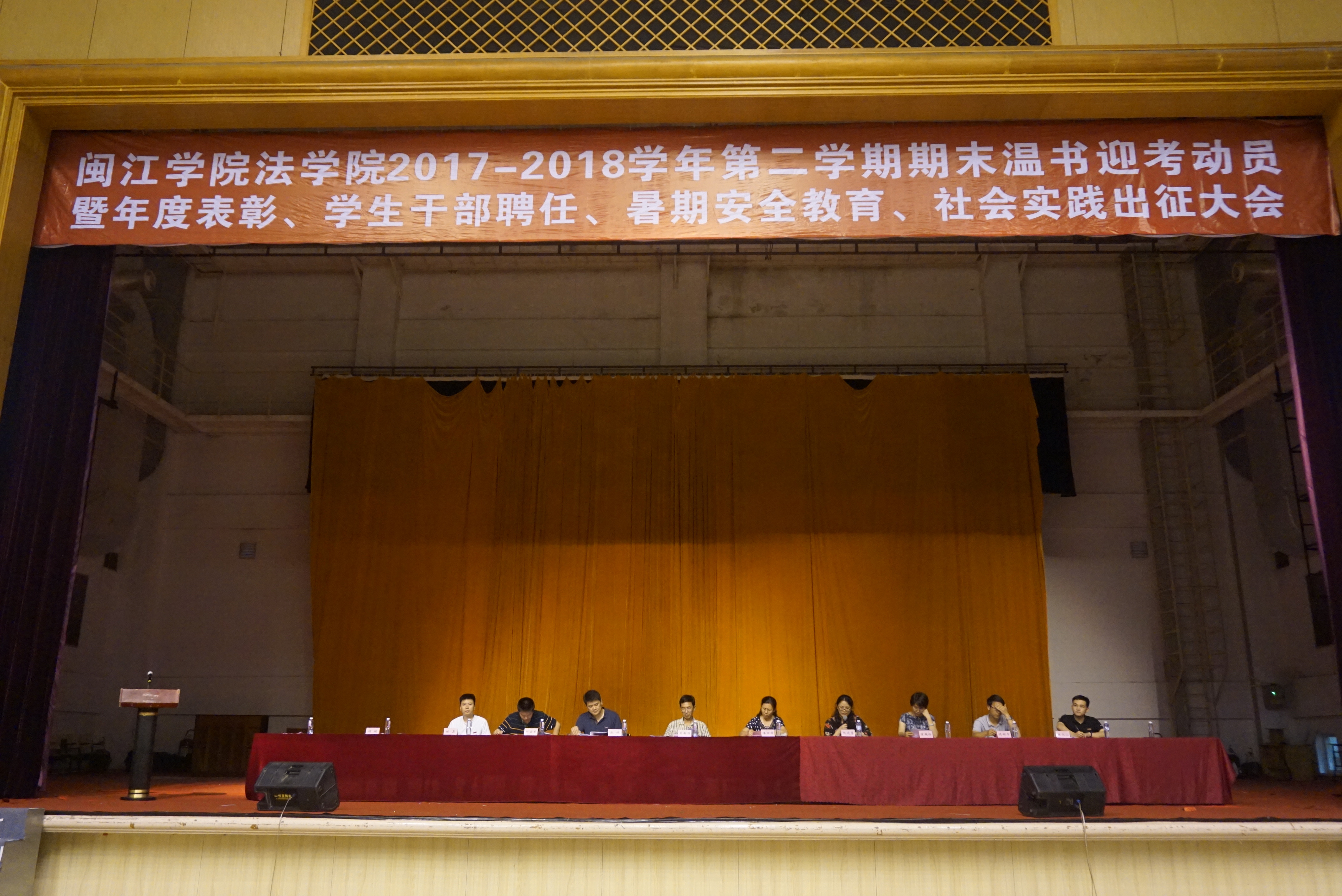 威廉希尔williamhill召开2017-2018学年第二学期期末温书迎考动员暨年度表彰、员工干部聘任、暑期安全教育、社会实践出征大会