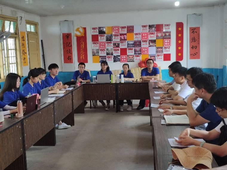 领导老师们与部分支教队员座谈交流。暖风支教队队长韦宁代表全体队员对领导的慰问表示欢迎和感谢,随即汇报前期的工作相关情况和进展及简单叙述接下来十天的工作部署。他表示暖风支教服务队紧紧围绕教学、日常管理、寻访调研等方面开展工作,努力提升自身教学水平,提高教学质量;深入贯彻精准扶贫政策,对员工们进行家访调研等。支教队员接着分享了自己在支教过程中的感悟与收获。同时各年级辅导员老师发表了个人感受和对队员们的期许。