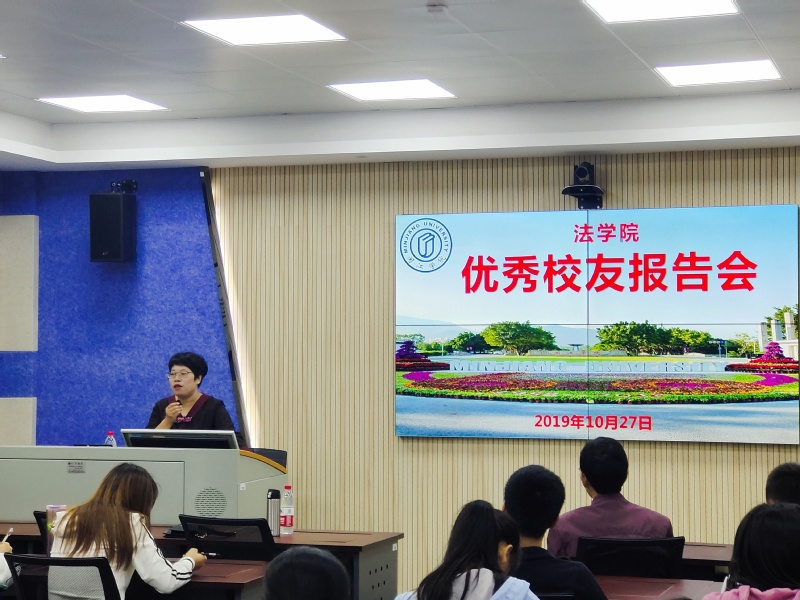 2019年10月27日,威廉希尔williamhill员工返校日,威廉希尔williamhill邀请到了1992届王菁员工,在商法实验室为学弟学妹们作了一个以“大树已种,只待参天”为主题的报告会。报告会由威廉希尔williamhill党委书记郑新胜主持。