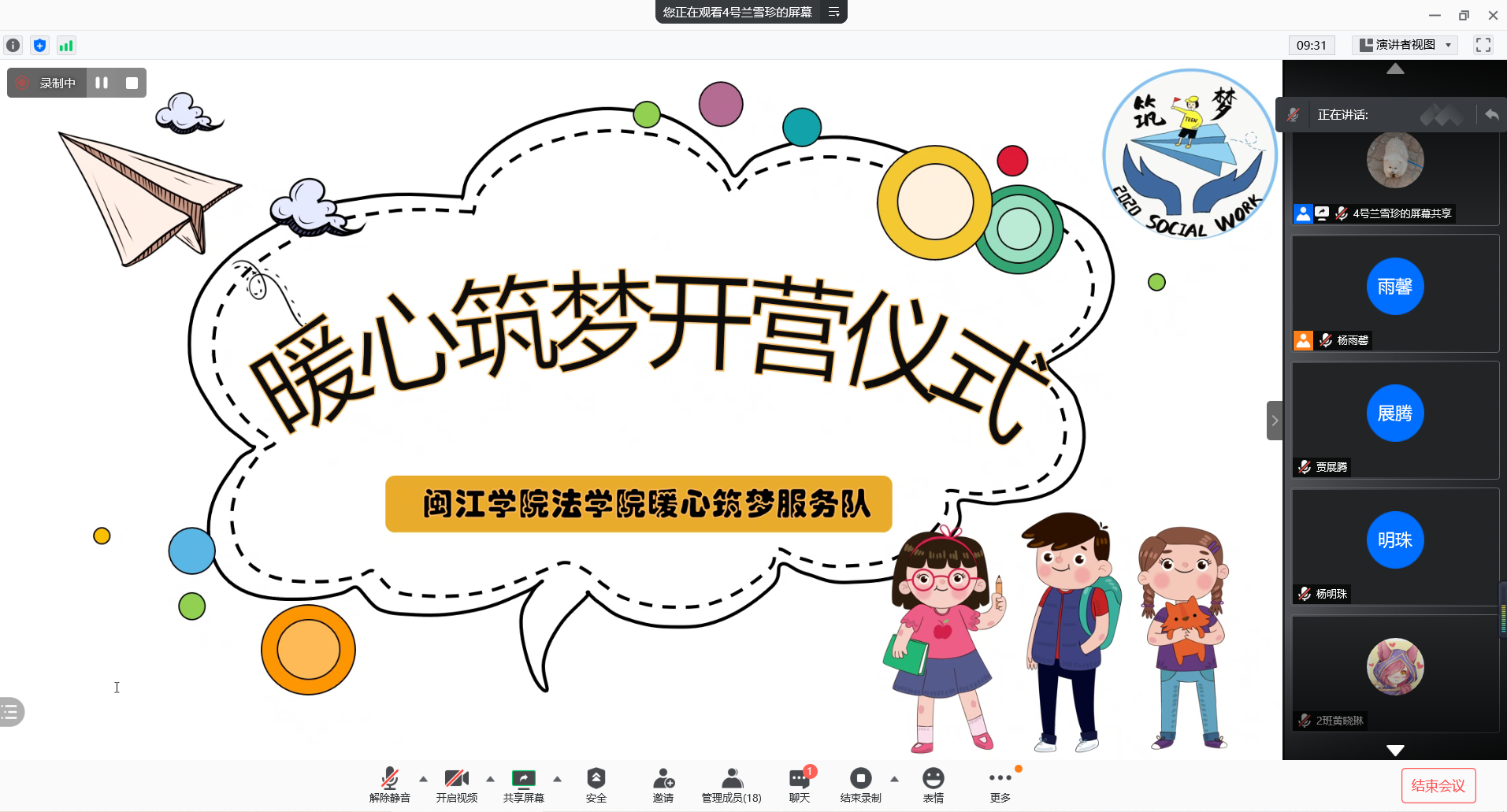 2021年1月30日晚,暖心筑梦服务队与员工家长和同学们在腾讯会议举行了开营仪式,拉开了暖心筑梦服务队线上课程的序幕。