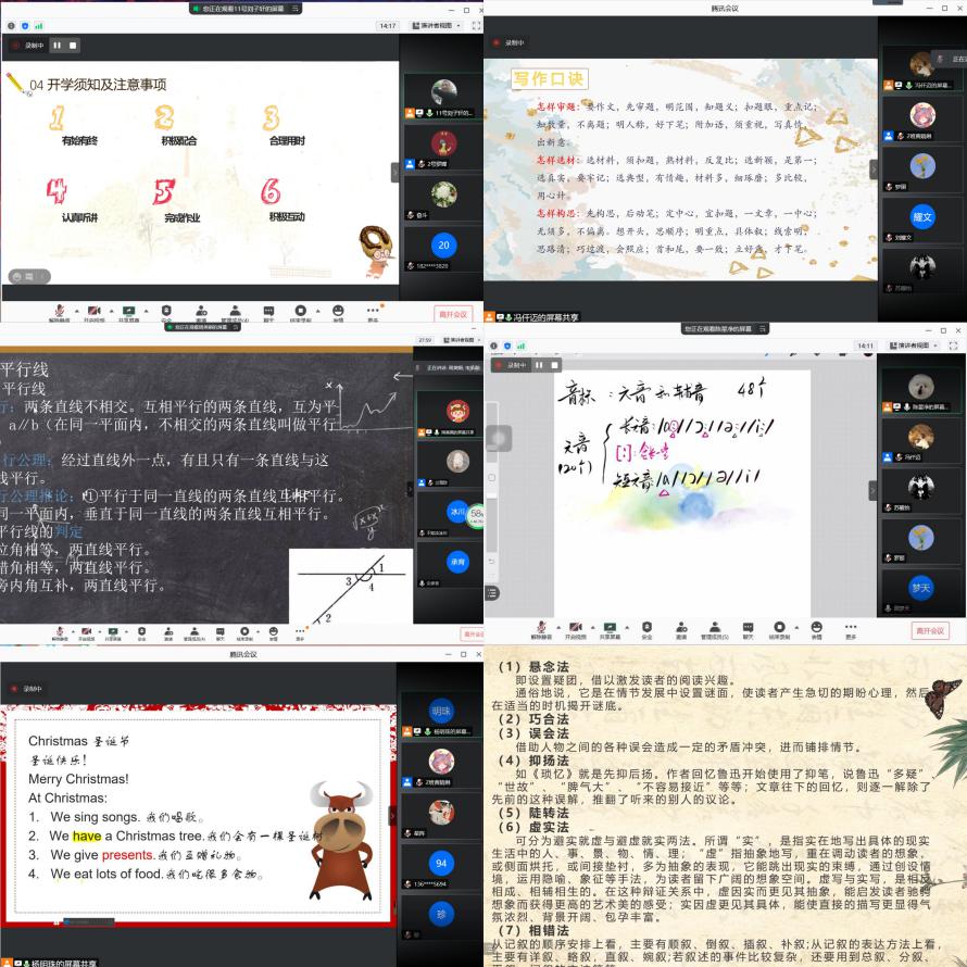 尽管线上教学能克服时间空间的局限,但也存在着很大的弊端,即老师与员工无法面对面教学,无法保证孩子们是否在认真听课,同时,网络是否通畅、对教学软件是否熟悉等一系列问题都影响着线上教学的质量与效果。为最大程度的克服弊端,暖心筑梦服务队针对腾讯会议的使用制作了详细的教程,让家长及员工都能尽量掌握其使用方法,克服设备引起的不良影响因素,及时、有效的参与到课堂中来。另一方面,暖心筑梦服务队宣讲组针对课程内容进行了多次设计与修改,根据各个年龄段孩子们的不同特点选择不同的上课方式与授课内容,为员工制定专属课程与特色辅导,专业课与特色课相结合,每天有早起、早读,每日的好习惯打卡活动以及各类“四史”学习教育系列课程、书法课、趣味地理、冷知识科普分享课等独具特色的课程,服务队队员充还分发挥自身优势,制定了线下亲子互动活动、同伴呵护交流游戏、一对一健康心理呵护等专业辅导课程。与此同时,服务队在开营前组织了多次试讲,对课程安排进行多次调整,着力提高课程质量。经过长达一周的精心准备,暖心筑梦服务队完成了课程试讲、线上招生及设备调试等前期准备工作。