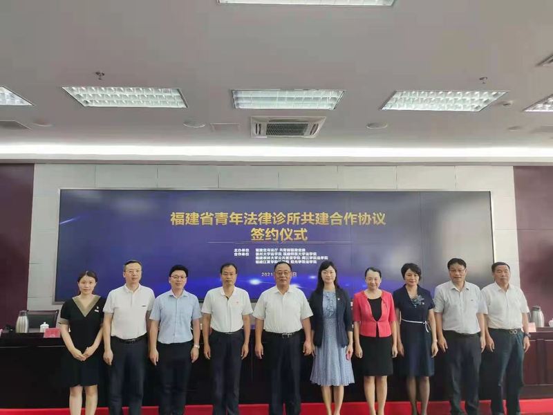 2021年5月14日下午,威廉希尔williamhill党委副书记何华锋和王冬老师赴福建省司法厅参加福建省青年法律诊所共建合作协议签约仪式。