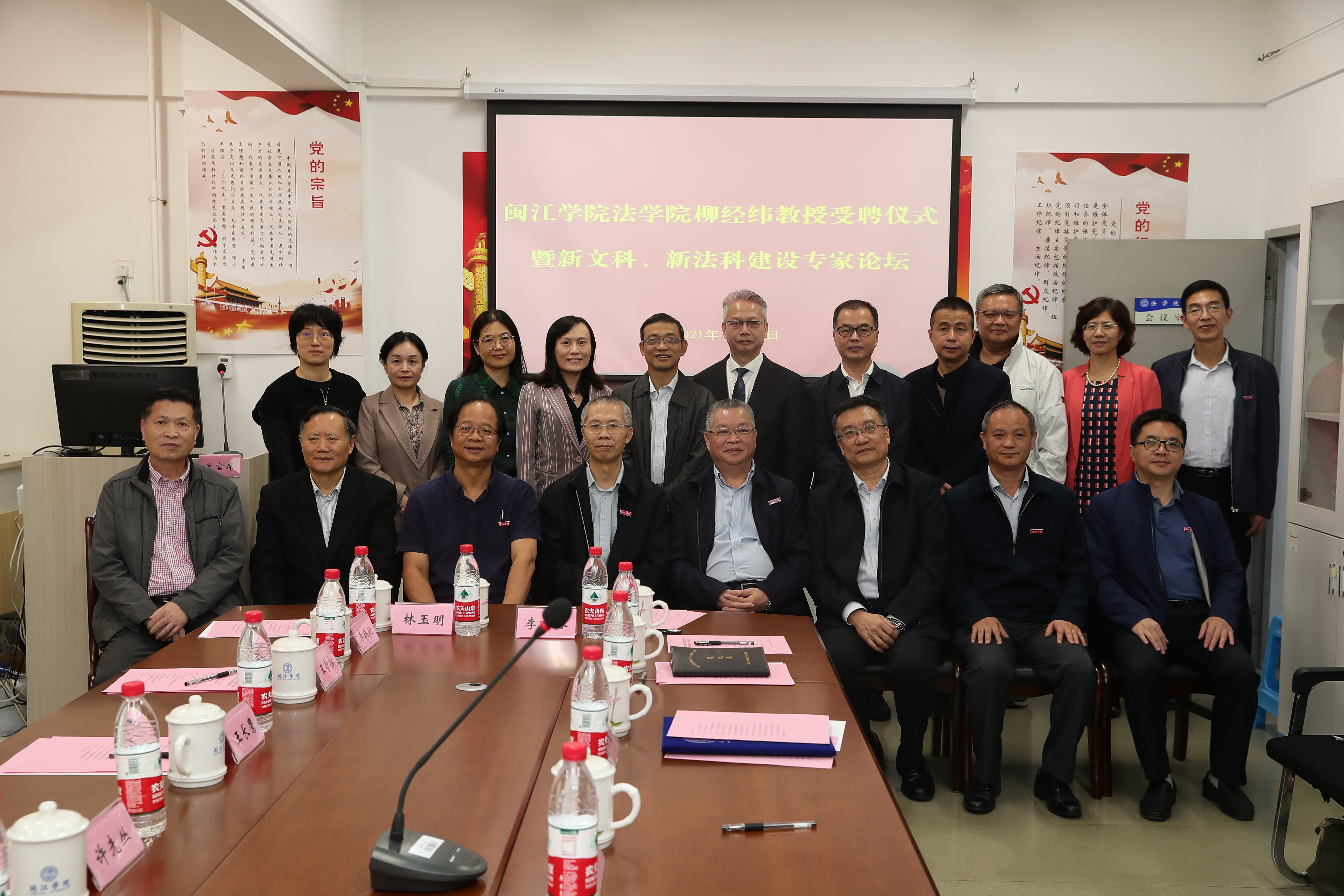 党政办、教务处、人事处、科研处、人才办等部门负责人参加聘任仪式。仪式后,公司举办了专家论坛,校内外专家就新文科、新法科建设进行深入研讨。