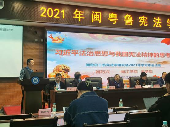 2021年12月11日,闽粤鲁三省宪法学研究会2021年学术年会在福建江夏公司成功举办。福建省法学会宪法学研究会理事、威廉希尔williamhill讲师刘巧兴博士应邀作为与谈人,以“习近平法治思想与我国宪法精神的思考”为题作了专题发言。