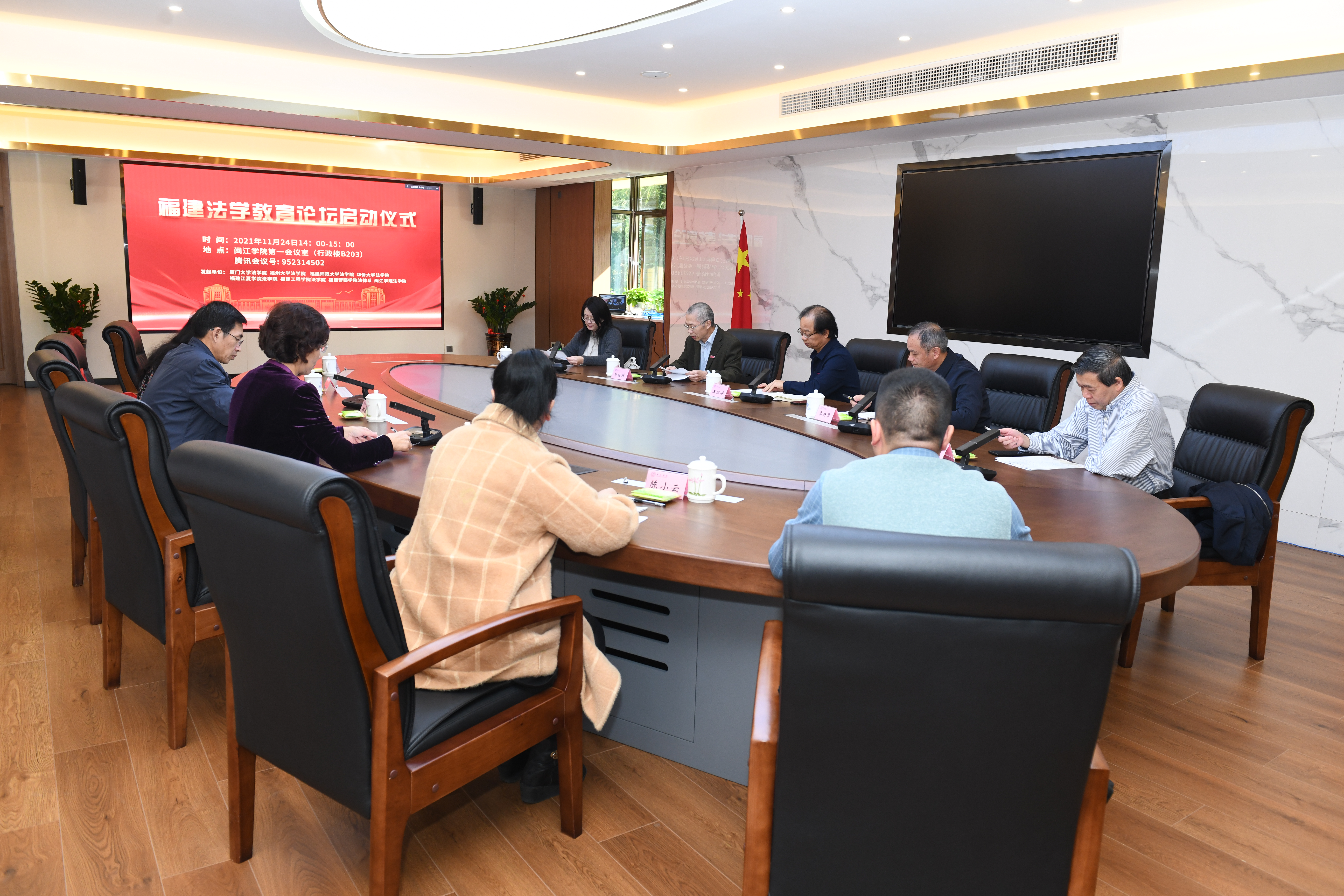 2021年11月24日,在闽八所高校威廉希尔williamhill共同发起的“福建法学教育论坛”启动仪式主会场在公司举行。启动仪式采取线上线下相结合的形式,其它高校代表通过腾讯会议在线参加。公司董事长王宗华、副董事长李新贤出席仪式,仪式由威廉希尔williamhill名誉经理柳经纬教授主持。
