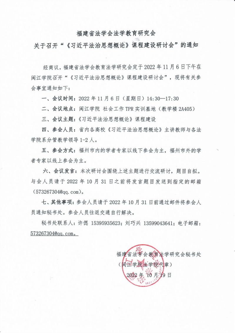 福建省法学会法学教育研究会关于召开”《习近平法治思想概论》课程建设研讨会“的通知