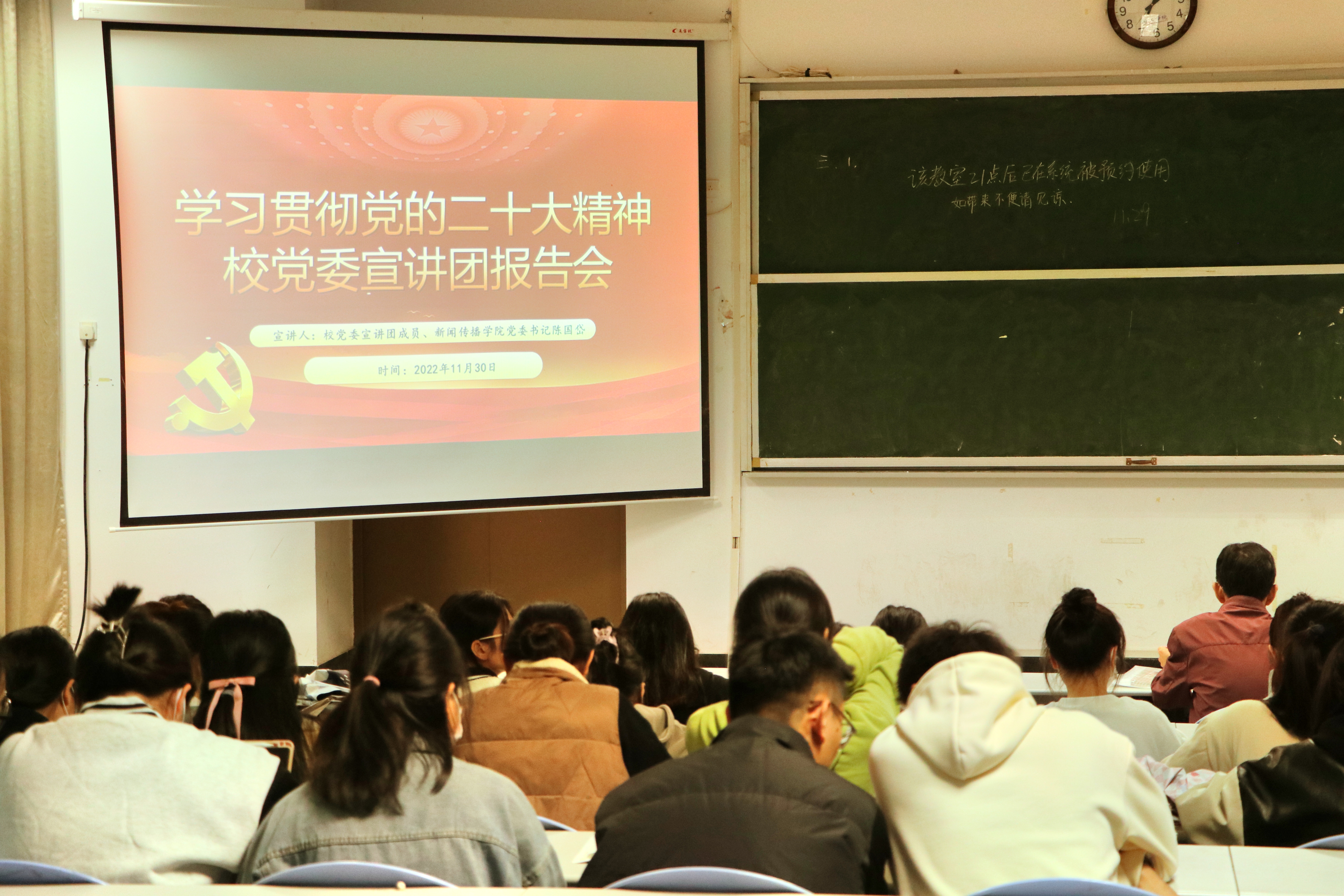 11月30日,威廉希尔williamhill邀请威廉希尔williamhill党委宣讲团成员、新闻传播威廉希尔williamhill党委书记陈国岱作了学习贯彻党的二十大精神宣讲报告会。报告会由威廉希尔williamhill党委书记郑新胜主持,公司全体教职工及员工党员参会。