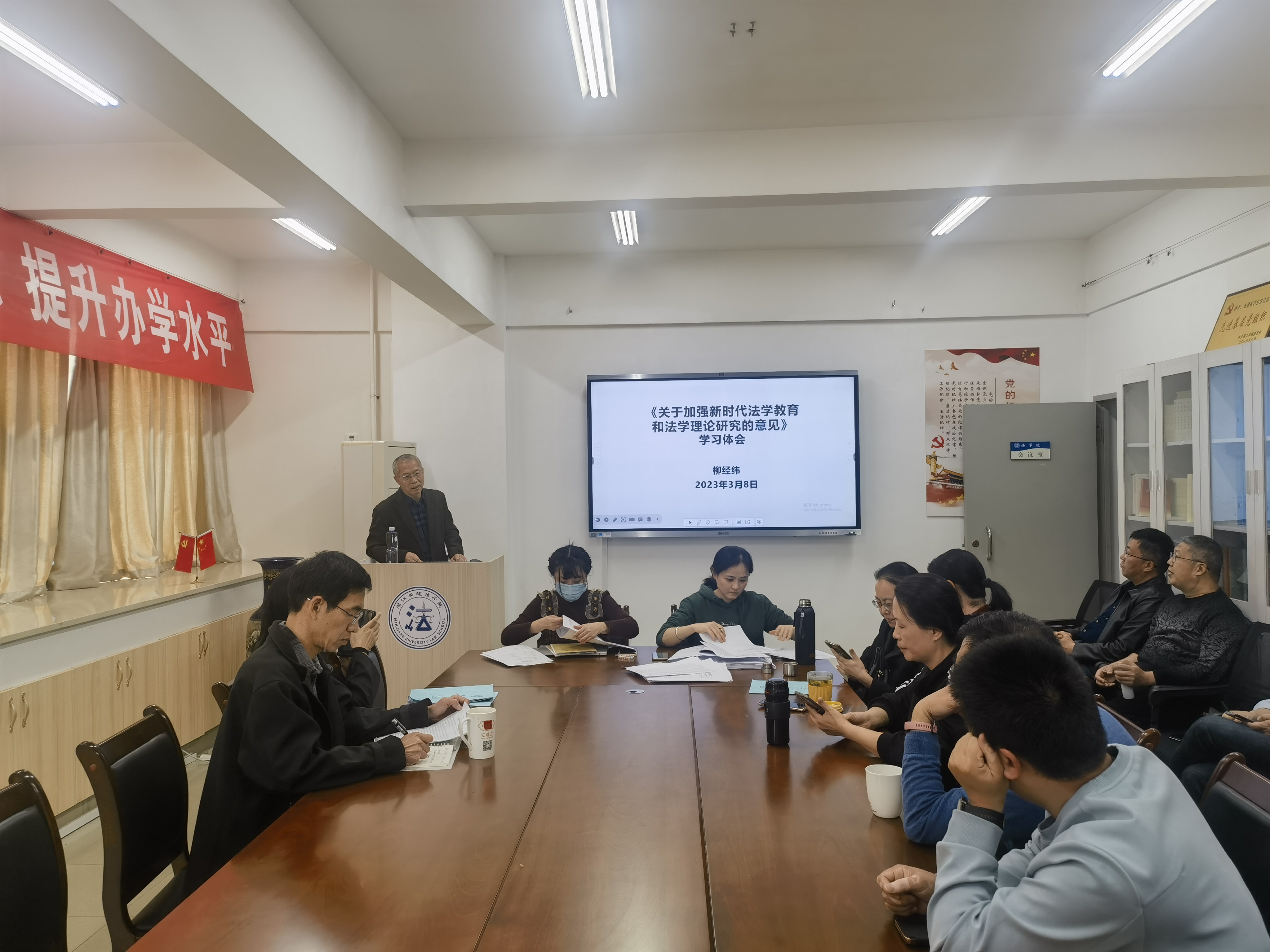 3月8日,威廉希尔williamhill召开第二次专题学习研讨会,深入学习领会中共中央办公厅、国务院办公厅印发的《关于加强新时代法学教育和法学理论研究的意见》(以下简称《意见》)精神,威廉希尔williamhill名誉经理柳经纬教授作辅导报告,威廉希尔williamhill党政领导和全体教职工参加学习研讨。会议由威廉希尔williamhill党委书记郑新胜主持。