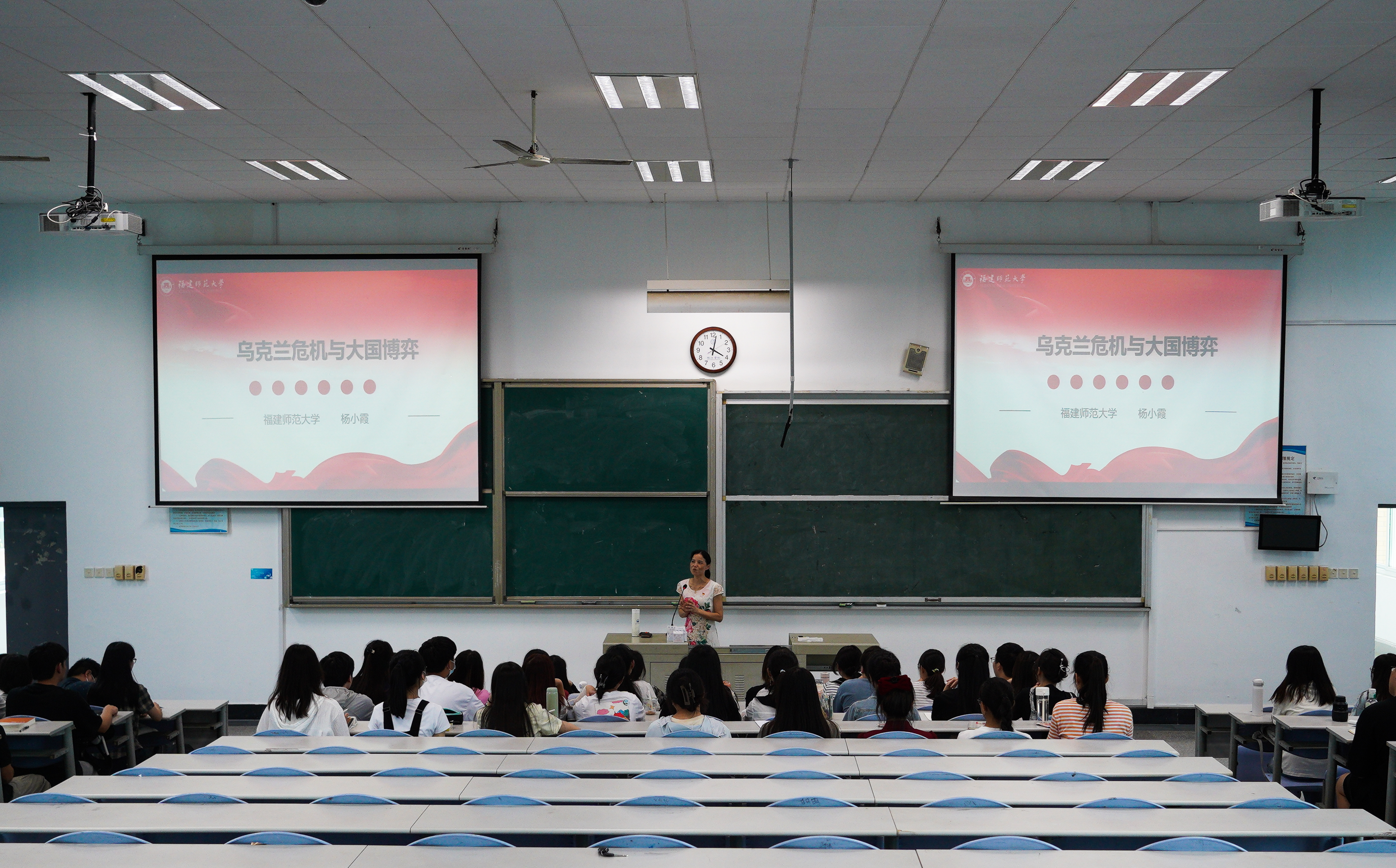 杨小霞副教授以“乌克兰危机与大国博弈”主题,围绕乌克兰危机爆发的历史背景、俄乌关系的历史经纬、冲突爆发的原因、带来的影响、背后的大国博弈及对我国的启示等多个方面展开讲述。以俄乌冲突、苏联解体等事件为例,阐述了统一坚强的政治核心对民族团结的重要性和必要性,建设廉政队伍、增进民生福祉对执政根基牢固的重要性,国家自主独立对国家安全稳定的重要性。她指出,我国在各领域都需要深刻把握“两个确立”,坚决做到“两个维护”,对外始终坚持独立自主的和平外交政策,共产党员队伍要始终保持清正廉洁政治本色,增强党性修养,才能推动实现中华民族伟大复兴。