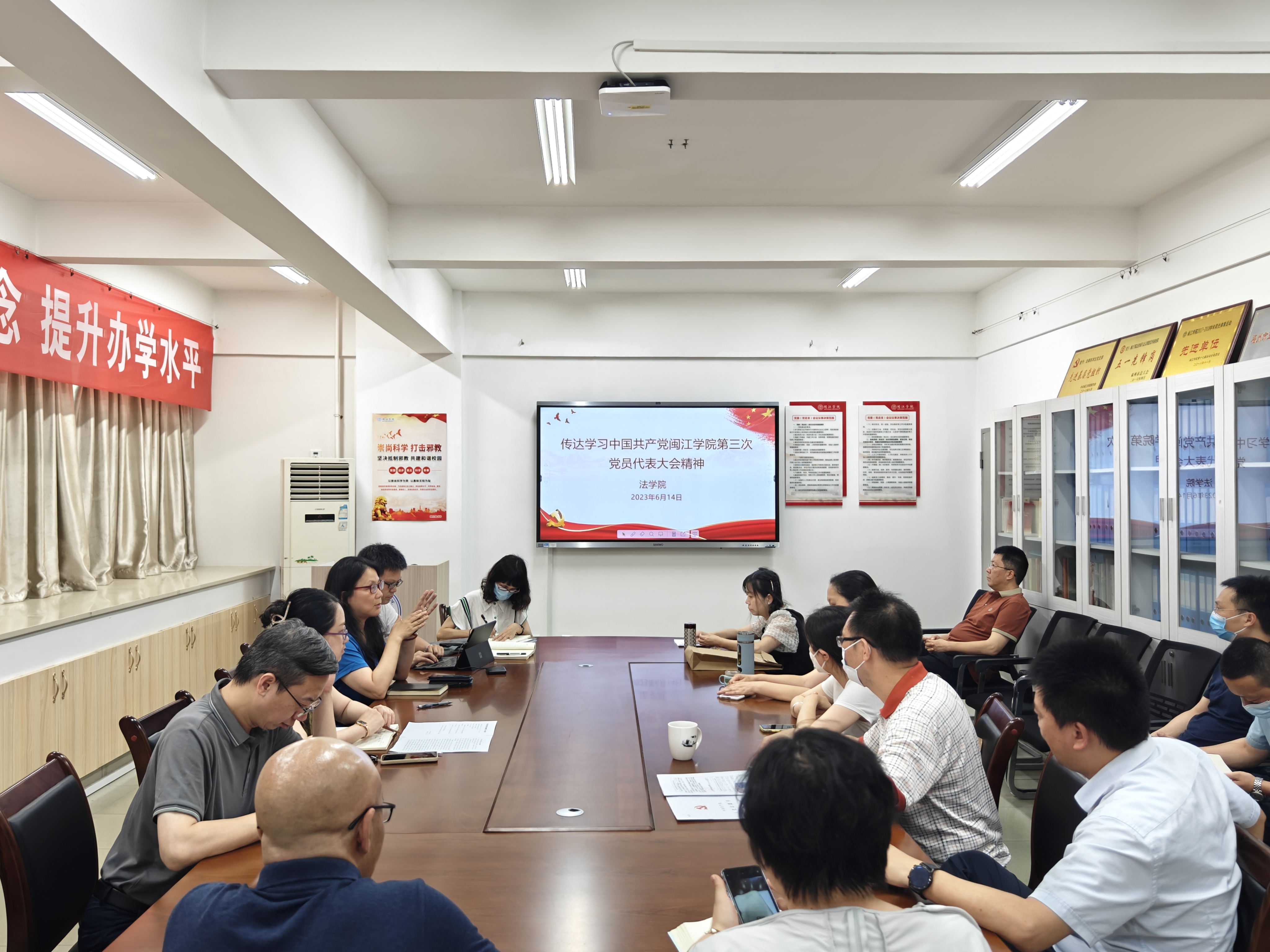 会议强调,全院上下要深入学习领会威廉希尔williamhill党代会报告精神,切实把思想和行动统一到威廉希尔williamhill党代会作出的决策部署上来,把力量凝聚到大会确定的目标任务上来。要紧紧围绕立德树人根本任务,提高法治人才培养质量和团队队伍建设水平,扎实推进“三全育人”,坚持“五育并举、德育为先”,努力培养造就更多具有坚定理想信念、强烈家国情怀、扎实专业根底的应用型法治人才,为奋力谱写全面建设社会主义现代化国家福建篇章作出新的更大贡献。
