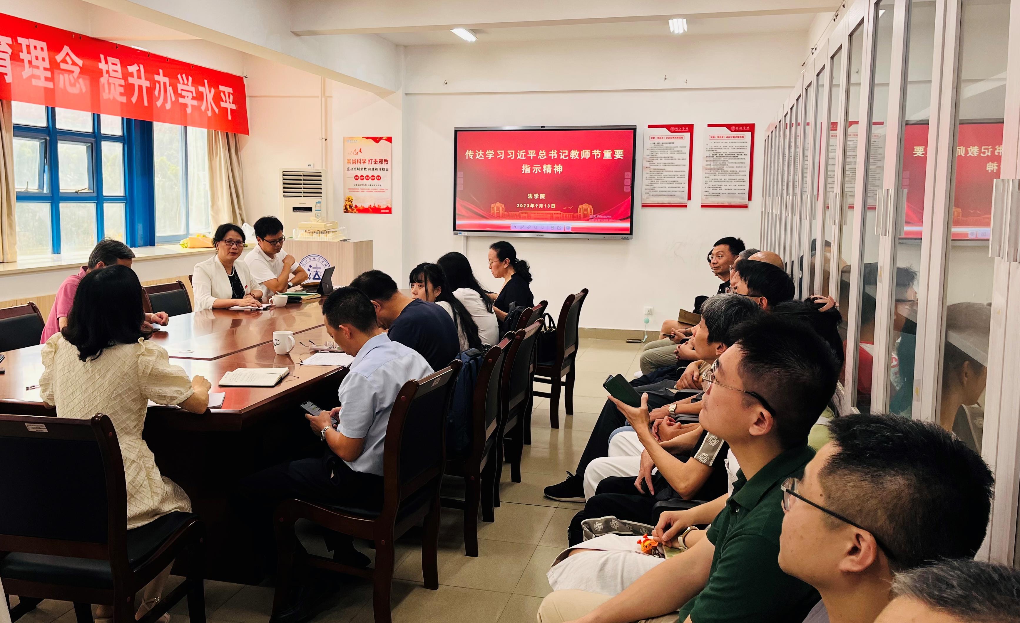 何华锋传达了习近平总书记教师节重要指示精神,他指出,习近平总书记的致信,对教师队伍建设提出了新的更高要求,并强调公司教师应认真学习习近平总书记教师节重要指示精神,大力弘扬教育家精神,在建设高水平应用型大学的新征程中冲锋在前、再立新功。