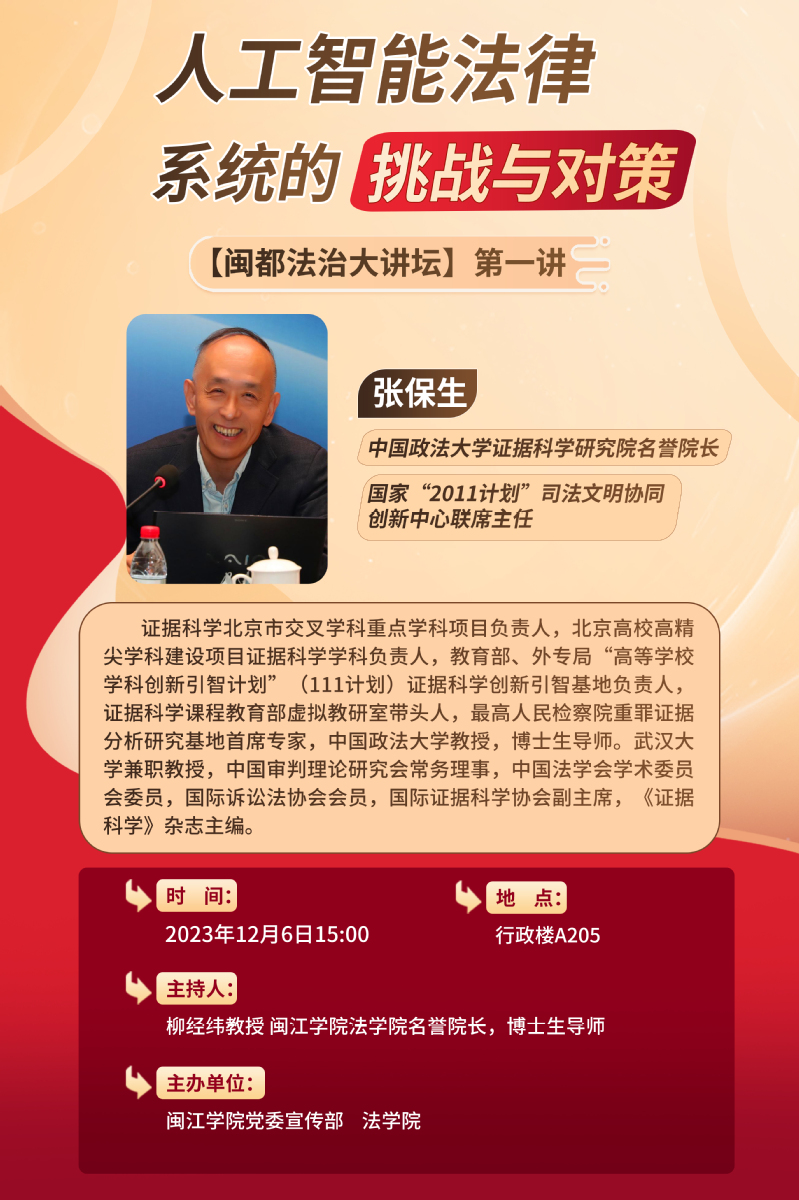 【讲座预告】张保生:人工智能法律系统的挑战与对策