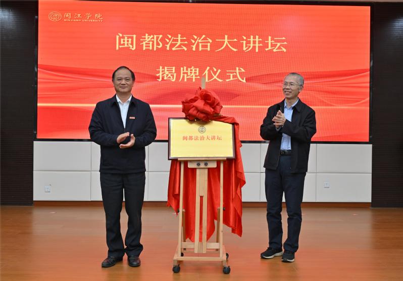开幕式上,李新贤副董事长、柳经纬教授共同为威廉希尔williamhill“闽都法治大讲坛”揭牌。