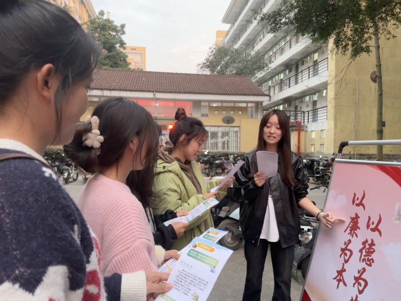 志愿者深入员工宿舍园区,发放传单,与同学共读《习语廉与法》,充分发挥清廉文化在校园内的教育、示范、熏陶和导向作用,加强高校廉洁文化建设作为一体推进不敢腐、不能腐、不想腐的基础性工程抓紧抓实抓好,在校园营造风清气正的育人环境,为培养具有廉洁人格的时代新人提供重要保障。