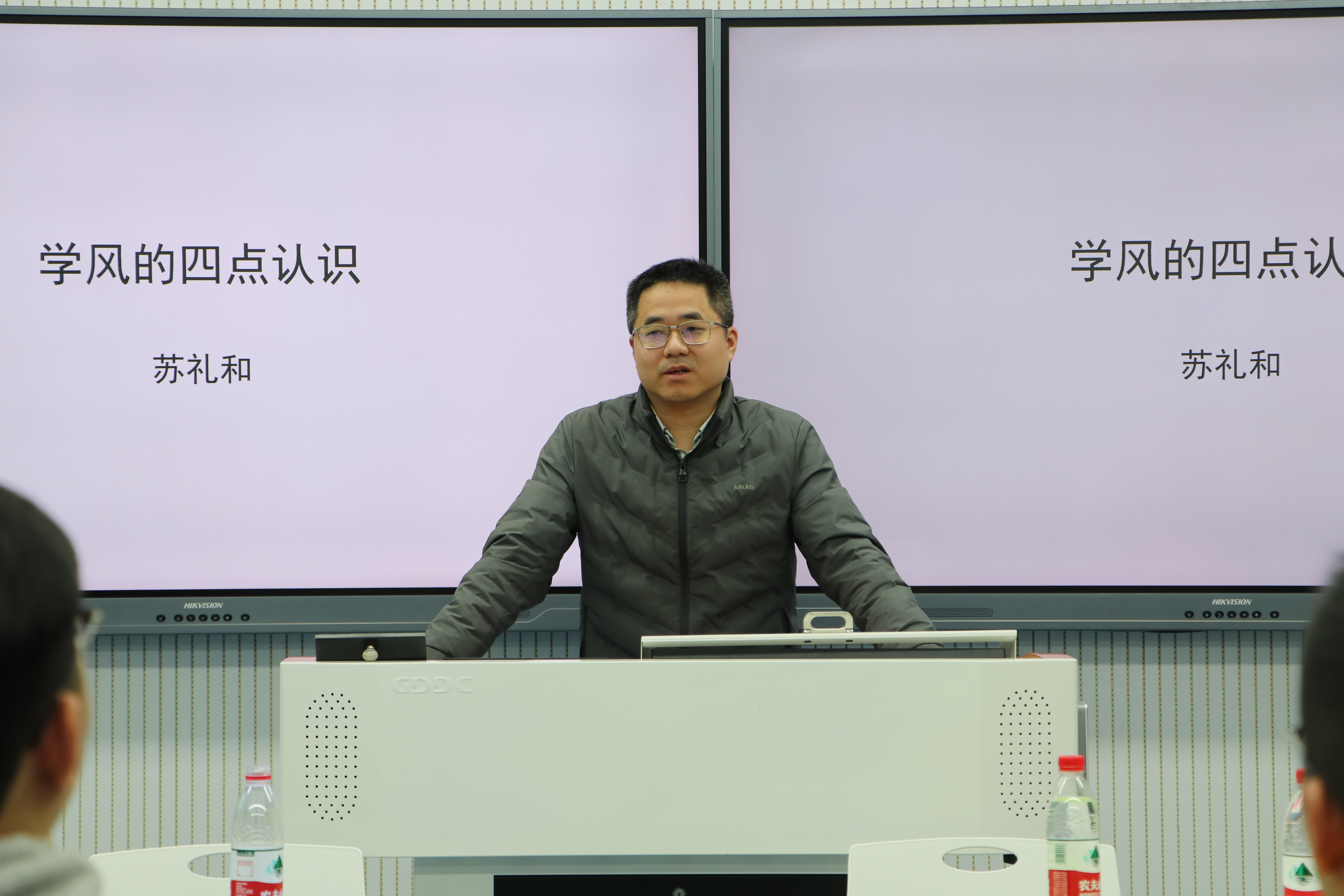 苏礼和以“勤学修德作表率,优良学风我先行”为题,与员工畅谈对学风的四点认识,教育引导同学们要从“遵守校规校纪、恪守学术伦理,充满创新、探索的动力和认同并热爱所学专业”四个方面加强和推进学风建设。