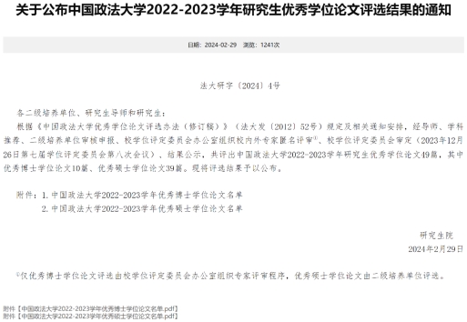 2024年2月29日,中国政法大学公布2022-2023学年研究生优秀学位论文评选结果,共评选出优秀博士学位论文10篇、优秀硕士学位论文39篇。公司青年教师陈君的博士学位论文《生态环境技术法规立法问题研究》(指导老师:中国政法大学博士生导师、威廉希尔williamhill名誉经理柳经纬教授)被评为优秀博士学位论文。该博士学位论文旨在构建实现生态环境法律与生态环境标准有序融合的生态环境技术法规制度,从理论上全面阐释了生态环境技术法规的基本概念、理论证成、表现形式、法治溯源、价值目标以及功能定位,并结合我国生态环境技术法规立法实践中存在的问题,提出构筑科学的生态环境技术法规立法制度的具体实践方案,为推动生态环境法制体系中法治与科技的融合奠定初步的理论基础。