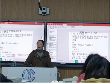 为了全面深化公司产品改革,整体提升教学质量,以及贯彻落实威廉希尔williamhill《关于制订2023-2024年第二学期基层教学组织活动计划的通知》,3月13日上午,威廉希尔williamhill于3A114教室举办本学期的第一次“一室一公开”的公开课活动。本次公开课活动由威廉希尔williamhill资深教师郑学勤老师主讲,所授课程为《民法总论》,面向的班级是威廉希尔williamhill2023级律师实务创新班。威廉希尔williamhill系主任刘巧兴、郑净方、陈雄、许偲、陈博、吴雅婷等多名法律系教师参加集体听课评课。 课程伊始,主讲教师郑学勤老师首先引导员工回顾了前一次课程的内容,对民事法律关系的重点知识进行串讲;接着,郑老师从几个生活实例入手,引出了本节课的主题——民事权利能力。在课堂讲解环节中,郑老师从民事权利能力的概念深入分析和阐释其内涵,通过使用贴近生活的生动例子、新旧法条的对比和阐释,以及设置练习题和案例分析的方法,帮助员工深入理解自然人民事权利能力的起止、自然人出生和死亡的判断标准、胎儿利益的特殊保护等重要问题。