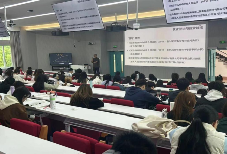 在课程依始,陈博老师带领员工共同回顾了上一堂课的知识要点,并进行细致而深入的梳理,使员工能够牢固掌握并有效衔接前后课程内容。紧接着,陈老师巧妙地运用了几个贴近生活的实例,生动鲜活地将本节课的主题“就业促进与平等就业”逐步引入课堂讨论。之后,陈老师从宏观的制度构建到微观的社会现实,全方位、多层次地剖析和解读了就业促进与平等就业的内在逻辑和实践要义。他详细解析了相关法律法规政策,并通过精心挑选的研习案例,让员工们真切感知到法律原则在实际工作和生活中的具体应用。在互动环节,陈老师鼓励员工积极参与,对就业歧视等社会热点问题展开讨论,引导他们从不同角度深入思考,从而提升员工对就业促进与平等就业的认知深度和广度。此种理论联系实际的教学方式不仅激发了员工们的求知欲,也极大地促进了他们对课程内容的深刻理解和把握,为他们未来面对职场挑战和社会问题打下了坚实的理论和实践基础。