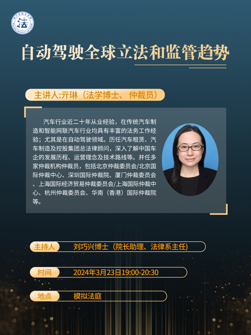【讲座预告】亓琳:自动驾驶全球立法和监管趋势