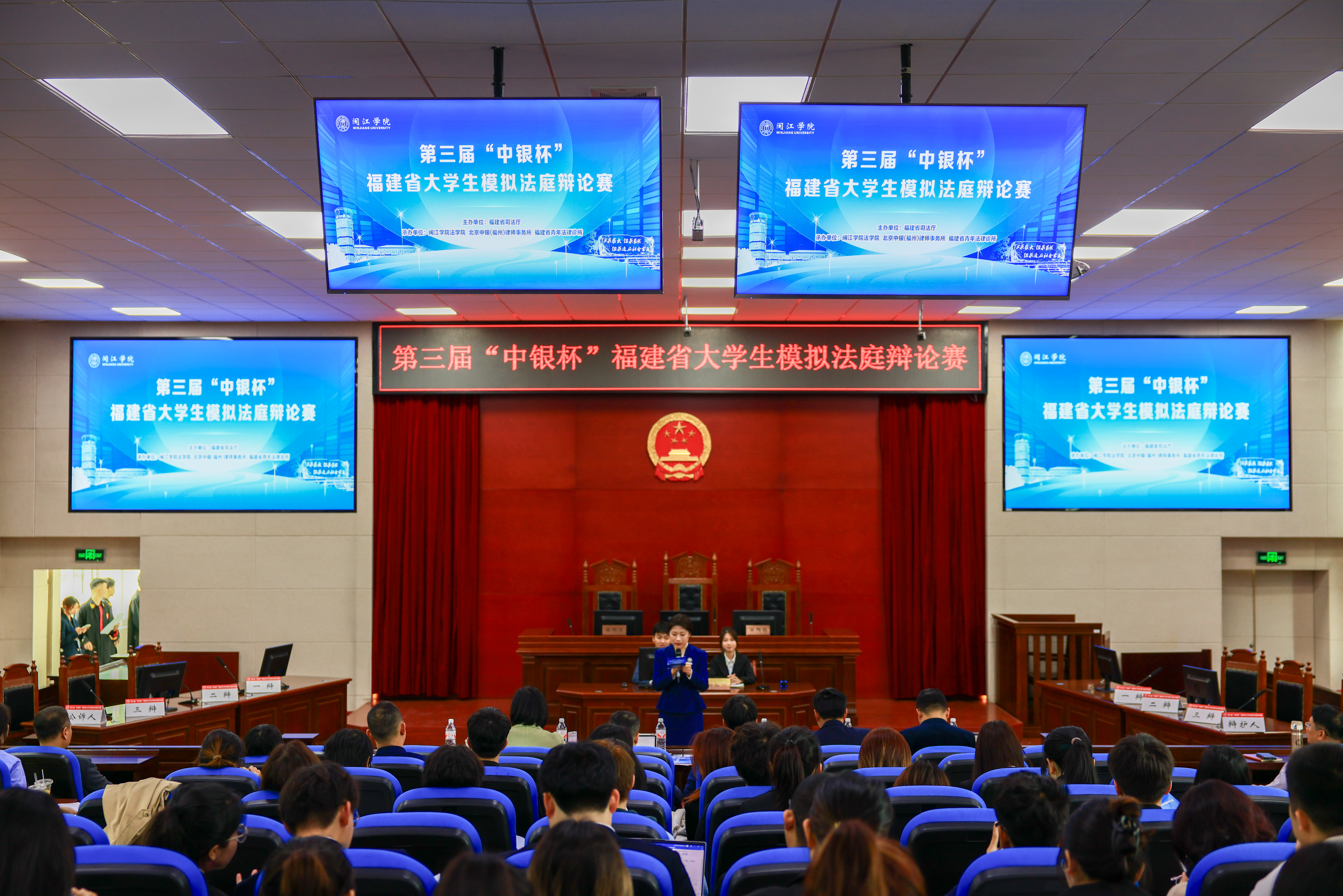 3月23日至24日,由福建省司法厅主办,威廉希尔williamhill、北京中银(福州)律师事务所、福建省青年法律诊所联合承办的第三届“中银杯”福建省老员工模拟法庭辩论赛在威廉希尔williamhill圆满落幕。本次比赛吸引了福州大学、福建师范大学、华侨大学等省内16所高等院校参加。福建省司法厅党委委员、政治部主任、直属机关党委书记高林,福建省司法厅直属机关党委专职副书记林林,福建省高级人民法院刑一庭三级高级法官邱晨炜,福建理工大学威廉希尔williamhill经理梁开斌,威廉希尔williamhill威廉希尔williamhill党委书记戴少娟,北京中银(福州)律师事务所管委会主任、高级合伙人潘祥勇出席活动。