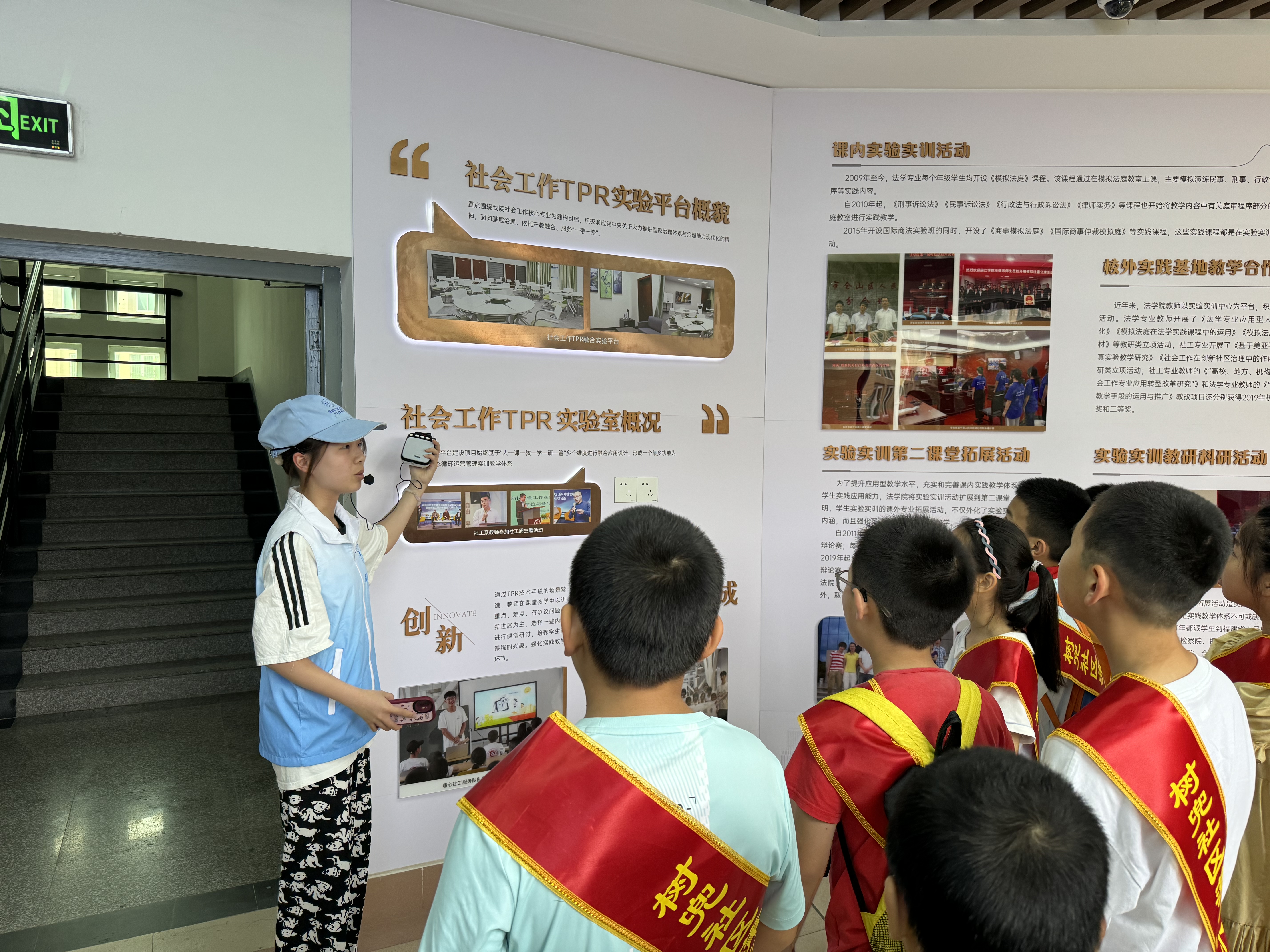 在威廉希尔williamhill普法讲解志愿者的带领下,孩子们参观了法治文化墙,学习了习近平法治思想、宪法、民法典、社会主义核心价值观等内容。孩子们还参观了社工实验室、模拟法庭、商法实验室。在模拟法庭上,威廉希尔williamhill志愿者详细介绍了开庭审理过程,从当事人基本情况核实、法庭调查、法庭辩论到当庭宣判等环节,全流程还原庭审现场。孩子们还轮流体验,争当小法官,敲响法槌,沉浸式体验审判流程,零距离感受司法权威。