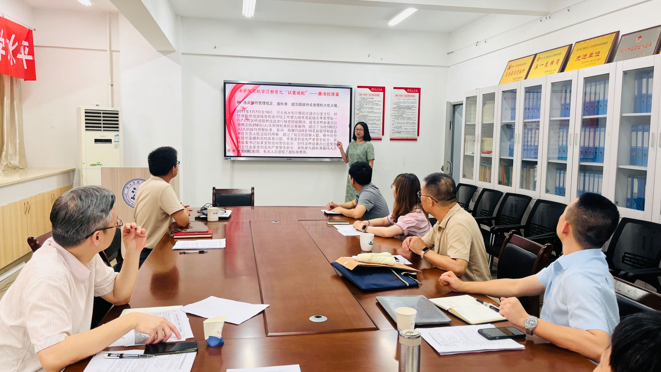 本次读书班采用“以案促学”的形式,专题学习“六大纪律”中的“廉洁纪律”和“群众纪律”。党委书记戴少娟、副书记何华锋作重点发言,分别围绕“廉洁纪律”“群众纪律”的典型案例,把负面典型案例作为活教材,对《条例》进行深入阐释解析。党委书记戴少娟作学习总结。