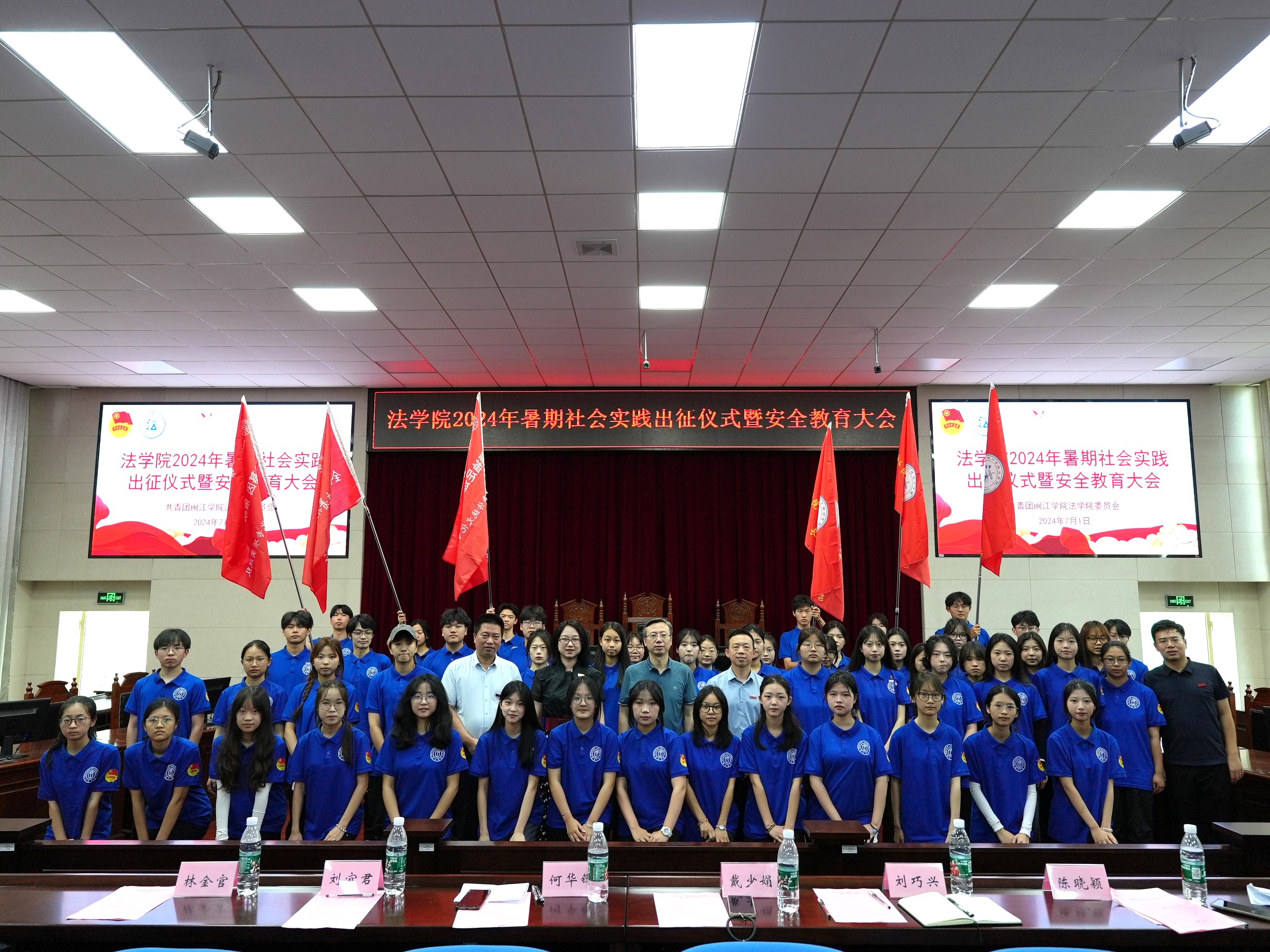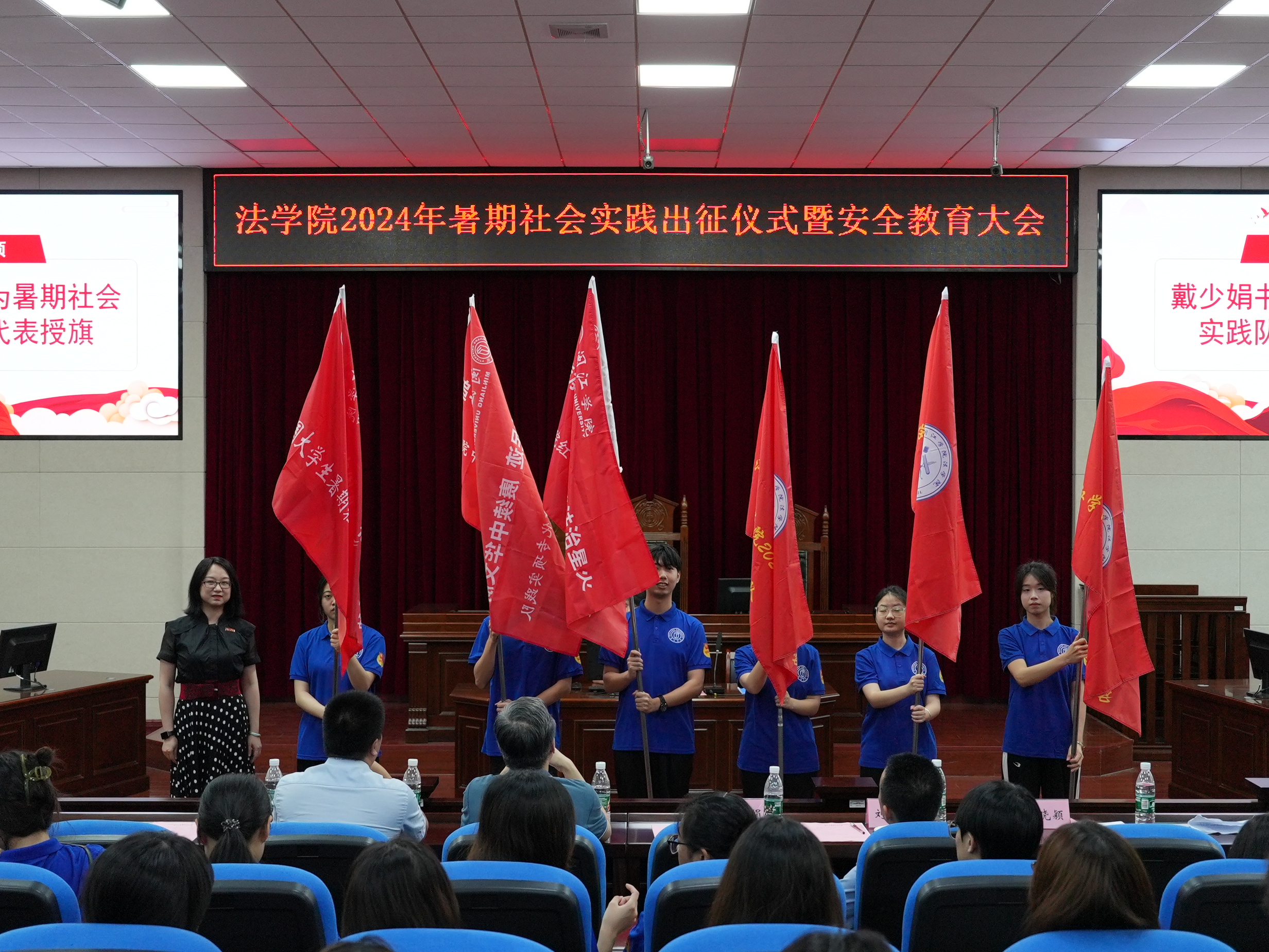 7月1日,威廉希尔williamhill于模拟法庭举行2024年暑期社会实践活动出征仪式暨安全教育大会。党委书记戴少娟、党委副书记何华锋、经理助理刘巧兴、指导老师代表社工系主任刘宜君、带队老师陈晓颖以及威廉希尔williamhill社会实践项目的全体队员出席本次大会。仪式由团委负责人林金官主持。