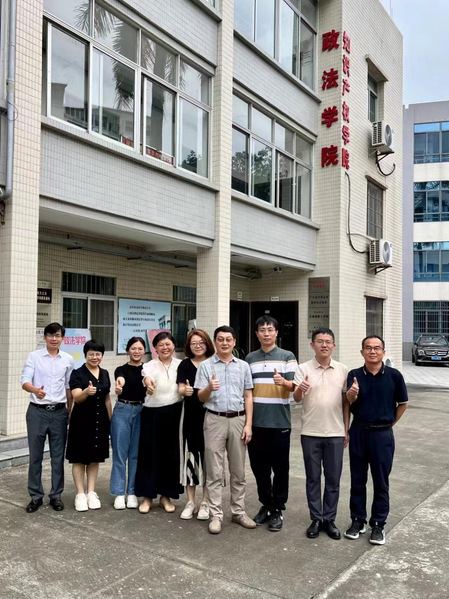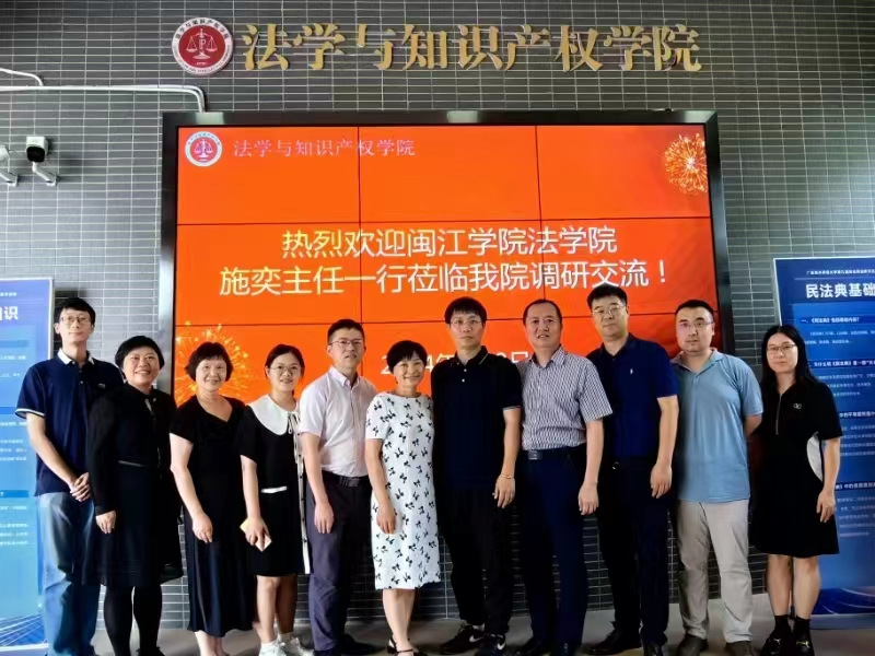 在广东技术师范大学,调研组与法学与知识产权公司副经理李小萍、肖扬宇、法学专业负责人曾晓昀等开展了“数字时代下的数智法治人才培养”调研交流会,双方就法学专业人才培养方案修订、数字素养培育、硕士点培育、人才引进等主题进行了深入交流。