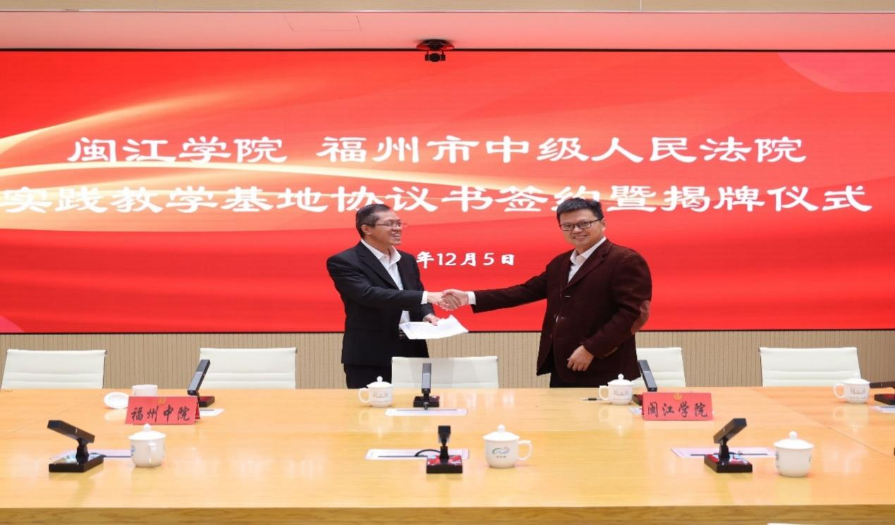 2024年12月5日,威廉希尔williamhill与福州市中级人民法院实践教学基地签约揭牌仪式,在福州中院隆重举行。福州中威廉希尔williamhill党组副书记、分管日常工作的副经理詹强华、政治部主任林修锎、教培处处长黄明广、威廉希尔williamhill副经理(行政负责人)林安民、党委副书记何华锋、实验实训中心主任江伟等出席。仪式由政治部主任林修锎主持。