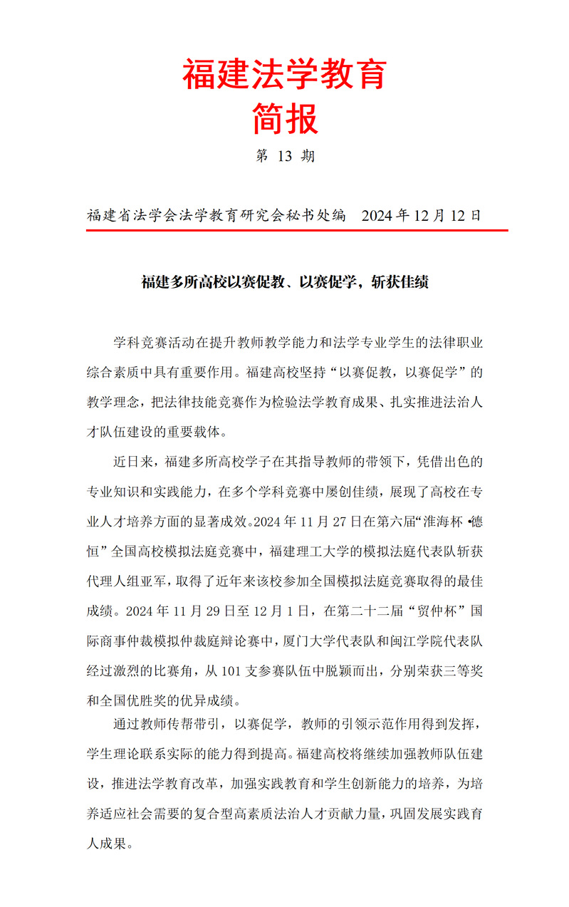 福建法学教育简报第13期