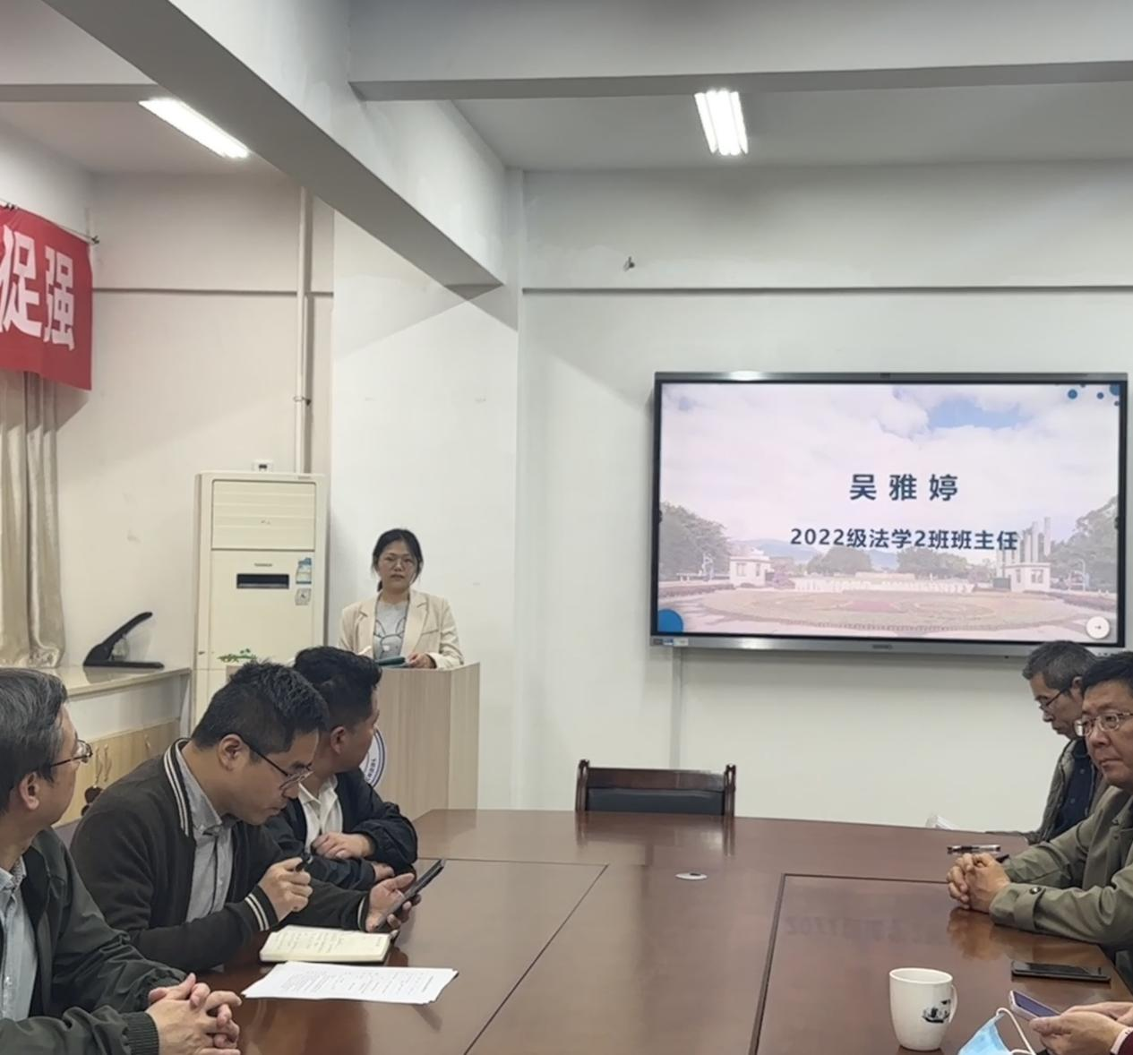 班主任、辅导员代表发言。2022级法学2班班主任吴雅婷从建立法学基础、积极参与法学课堂、广泛阅读法学文献等五个方面阐述如何引导员工扎实专业知识与培养专业学习兴趣。2021级社会工作2班班主任苏礼和重点分享了如何帮助员工做好职业生涯规划,他指出作为班主任一方面要及时强化员工的就业意识、升学意识和危机意识,另一方面要发挥自身优势,善于帮助员工链接各种资源,提供更多服务。2020级社会工作1班班主任吴喜双从毕业班员工论文与实习实训角度出发,探讨该阶段员工所面临的压力与心态转变问题,她表示,利用学科专业特色可以鼓励员工将实习实训和毕业论文的写作更好地结合起来。2020级本科生辅导员林煜以“辅导员和班主任如何打好‘组合拳’做好协同育人”为主题,希望能够加强与在座班主任的沟通,在学风建设、思想引领等方面共同为员工成长成才保驾护航。