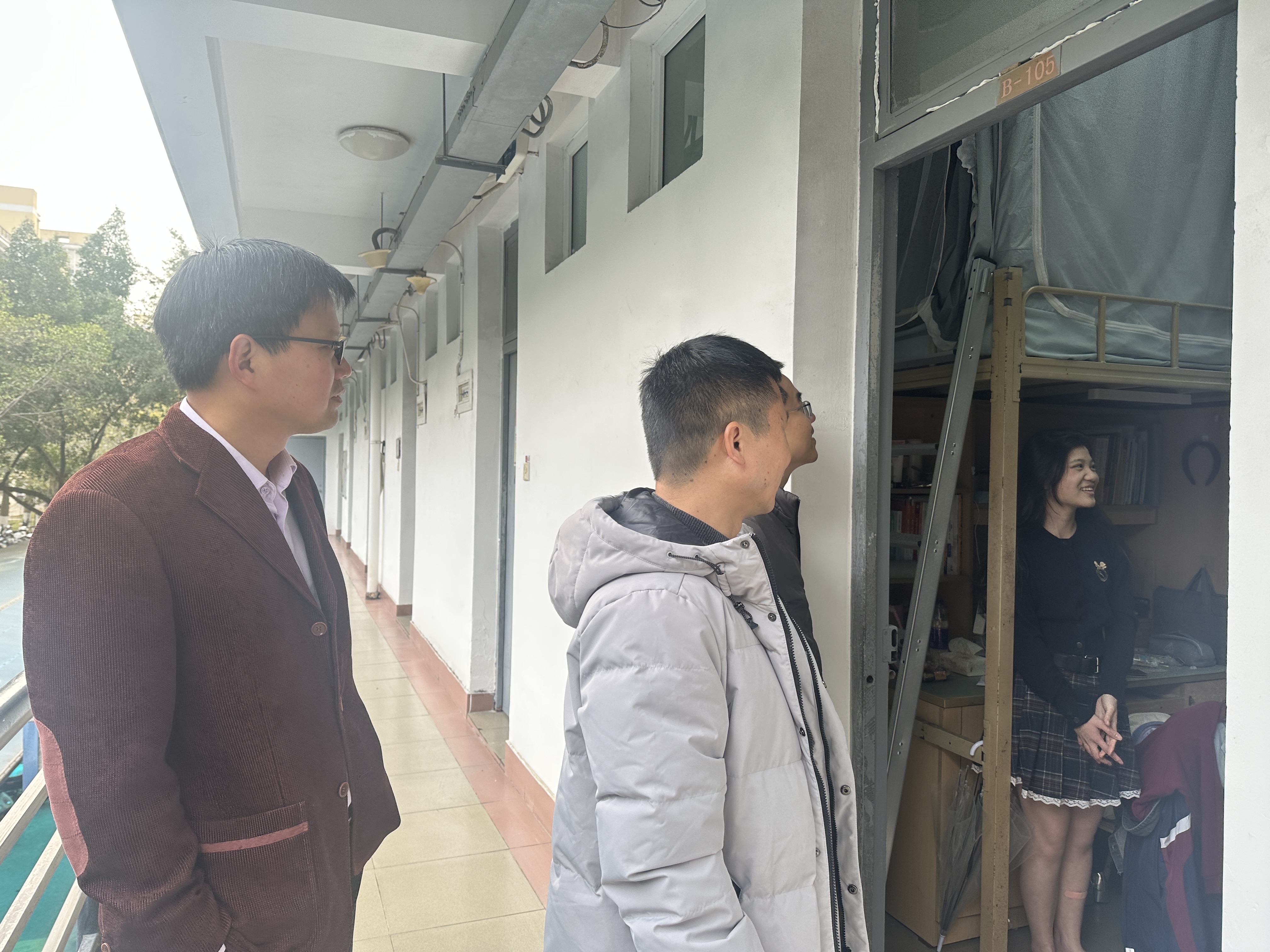 走访过程中,领导们与员工们亲切交谈,详细询问了大家的假期生活、课程安排和新学期规划,特别强调了宿舍安全等问题,叮嘱同学们做好宿舍卫生管理,及时调整作息等。王圣洪充分肯定了同学们积极向上的精神面貌,鼓励大家在新学期里要明确目标,制定合理的学习计划,珍惜时光,努力学习,不断提升自身综合素质。