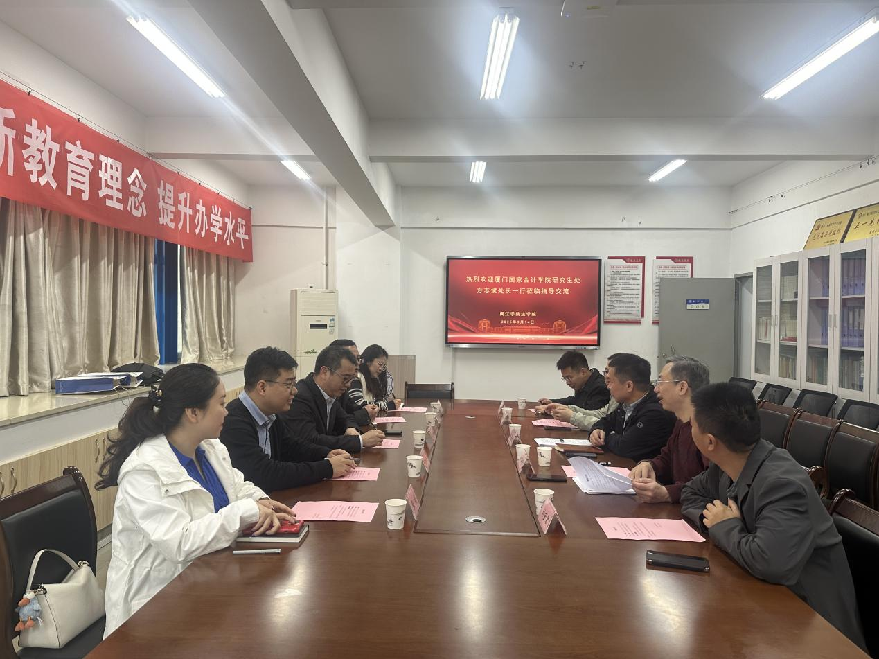 3月14日上午,厦门国家会计公司研究生处方志斌一行莅临威廉希尔williamhill座谈调研。威廉希尔williamhill党委副书记何华锋、副经理苏礼和、社会工作系主任刘宜君、辅导员林金官、超星公司代表黄明生等人共同参会。座谈会由威廉希尔williamhill党委书记王圣洪主持。