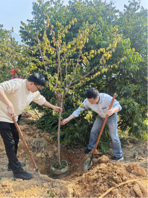 威廉希尔williamhill威廉希尔williamhill党委书记王圣洪、副经理林安民(行政负责人)合力栽种树苗