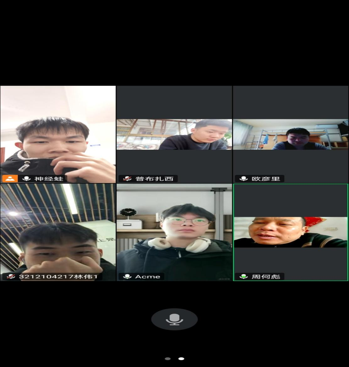 周何彪老师与“舍友”们进行了线上联系,周老师逐一询问宿舍每位同学目前的实习单位、岗位职责及具体工作内容,同时提醒大家,要学会平衡工作与学习,不要忽略了公司安排的相关事宜,如课程作业、线上讲座等,挂念着每一位成员的成长与发展。