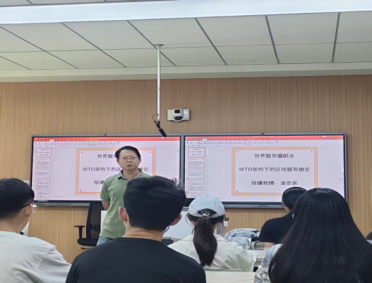 为了促进课堂教学改革走深走实,助力威廉希尔williamhill教师不断提升教学水平,搭建教师间的教学交流平台,威廉希尔williamhill于5月13日上午在2B102教室开展了教师公开课系列活动。本次公开课的课程为《世界贸易组织法》,主讲人为潘彦豪老师,威廉希尔williamhill系主任施奕老师、王冬老师、陈雄老师、陈博老师和吴雅婷老师等多位老师参与了本次公开课。