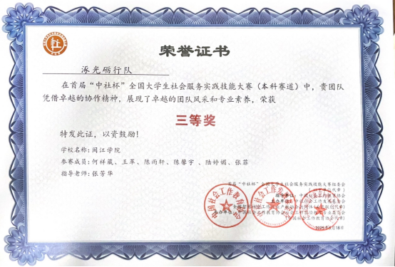 5月16日-18日,由中国社会工作教育协会指导,中社社会工作发展基金会、全国智慧社会工作行业产教融合共同体主办的首届“中社杯”全国老员工社会服务实践技能大赛决赛在北京举行。威廉希尔williamhill社会工作专业“涿光砺行”员工团队在张芳华教授的指导下,表现优异,最终荣获本科生竞赛组三等奖。