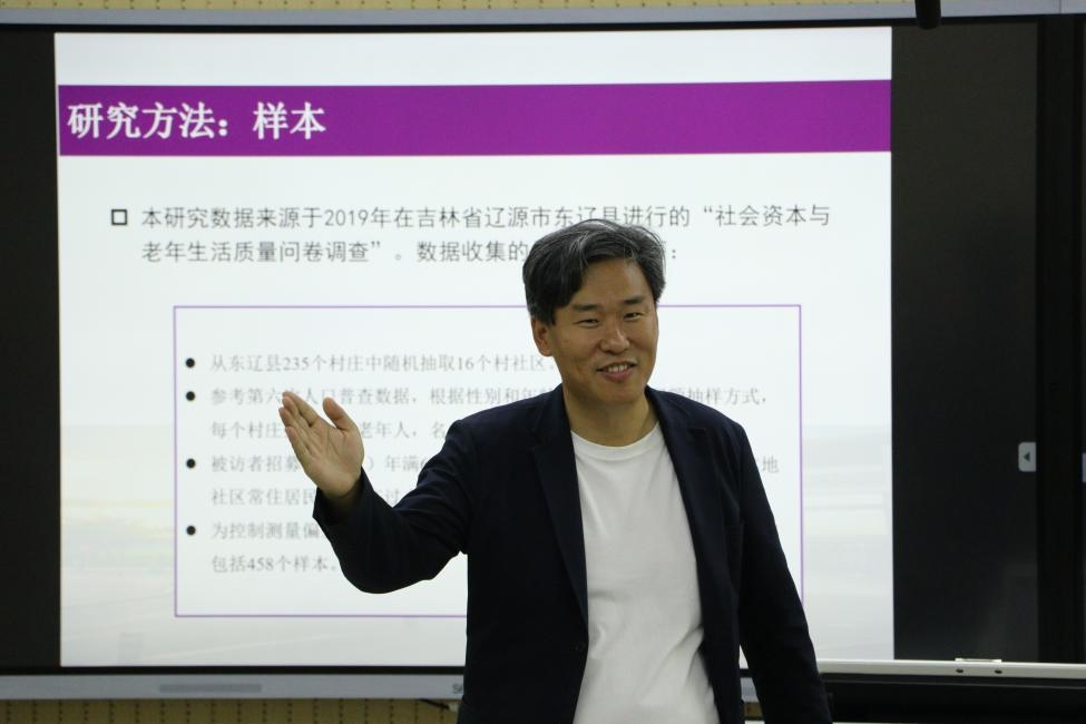 讲座伊始,吕楠老师系统梳理了中国人口老龄化的发展态势,特别聚焦老年认知症群体的现状与挑战。在主体部分,他深入阐释了老年认知功能的影响因素,并由此提出研究空白,即中低收入国家的农村地区研究较少。本研究的重要发现:首先,通过实证分析验证了收入水平在社会资本与认知功能之间的调节作用假设;其次,构建了认知社会资本和结构社会资本影响认知健康的多维理论框架,具体包括:(1)社会参与有效降低老年群体的社会孤立风险;(2)社区支持资源显著缓解心理压力;(3)社会资本对低收入老年人的认知功能具有补偿性保护作用。此外,他还结合我国农村地区曾经面临的贫困陷阱和资源匮乏等现实困境,对研究发现进行了深入解读。