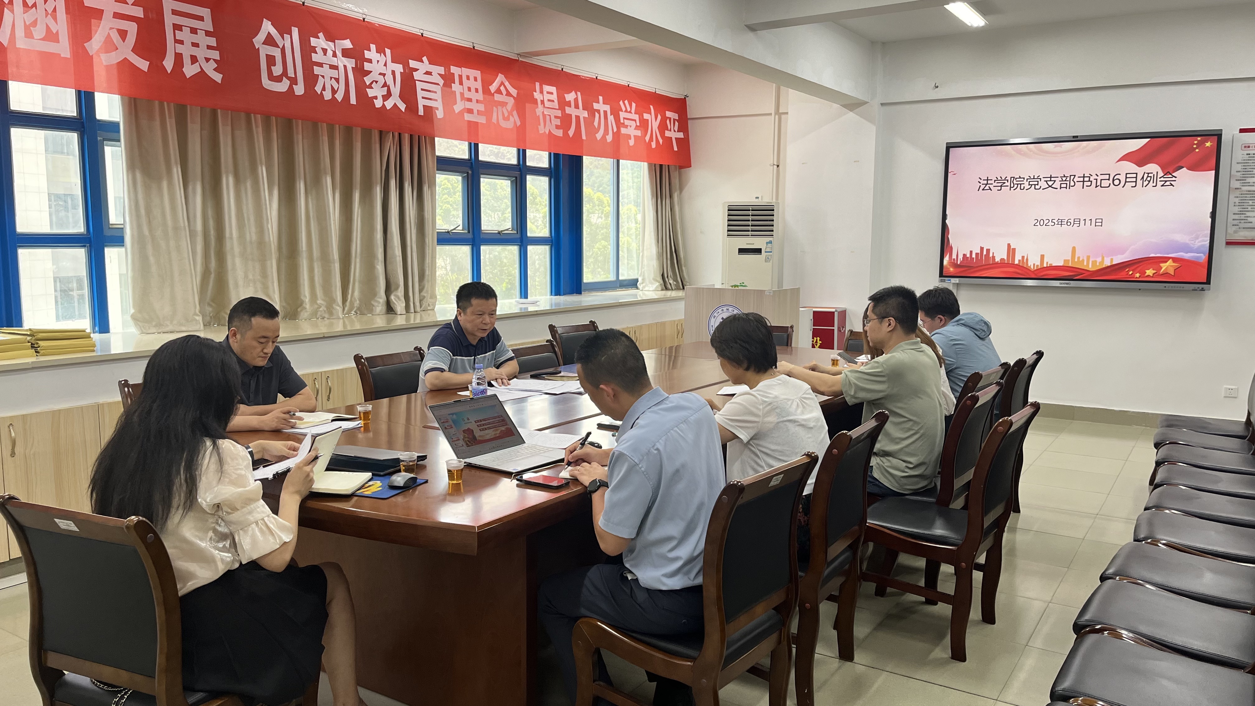 王圣洪强调,一要把深入贯彻中央八项规定精神学习教育成果转化为自觉行动,在学查改一体推进中,重点做好整改工作;二要做好高质量党建引领高质量发展,支部工作要以标准和规范为基础,以思想工作为抓手,推动各项工作创新发展;三要持续加强宣传阵地建设,层层压实责任,加强阵地常态化监管,持续加强师德师风建设;四要密切关注员工暑期专业实习、期末考试、毕业就业各环节的思想动态,强化就业指导与帮扶,做好毕业生的离校工作,确保校园安全稳定。