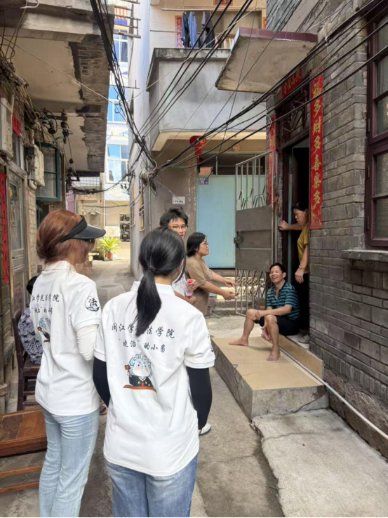 在威廉希尔williamhill法律系主任施奕老师的指导下,一支由五位法学专业员工组成的调研小组走进洋中村,开展实地调研与村民访谈。同学们以专业视角倾听民声,收集民意,围绕村规民约现存问题与村民实际法律需求,与村民展开深入交流。在村中公园、街巷院落,员工们与老人、妇女、青年等不同群体畅谈生活中遇到的法律问题。